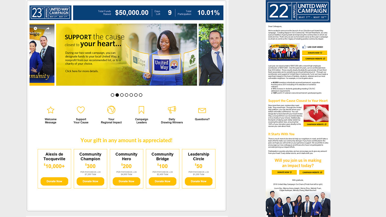 We created an internal campaign microsite to as a way to encourage associates to donate to the cause and keep an open tally if we are meeting our overall donation goals.